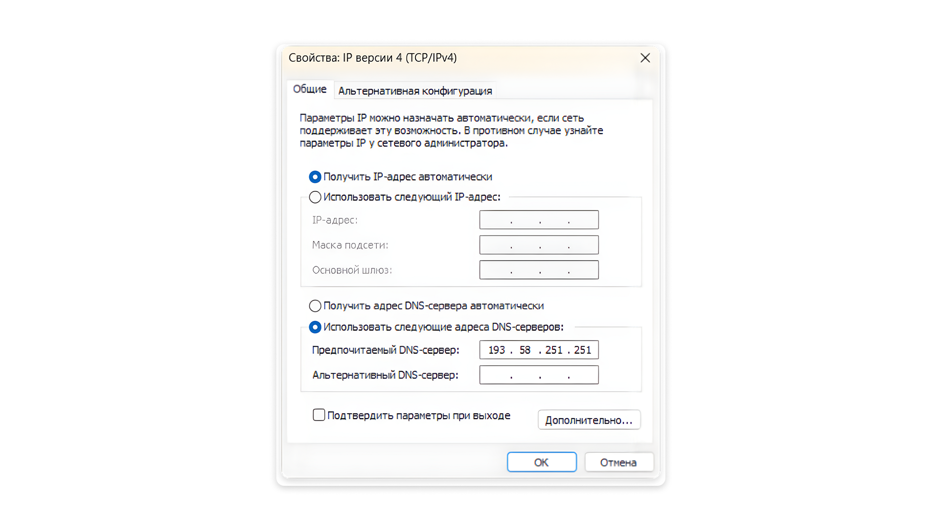Если это не поможет перезагрузить ДНС сервер , попробуйте использовать популярные публичные DNS-серверы. Выберите «Использовать следующие адреса DNS-серверов» и введите: