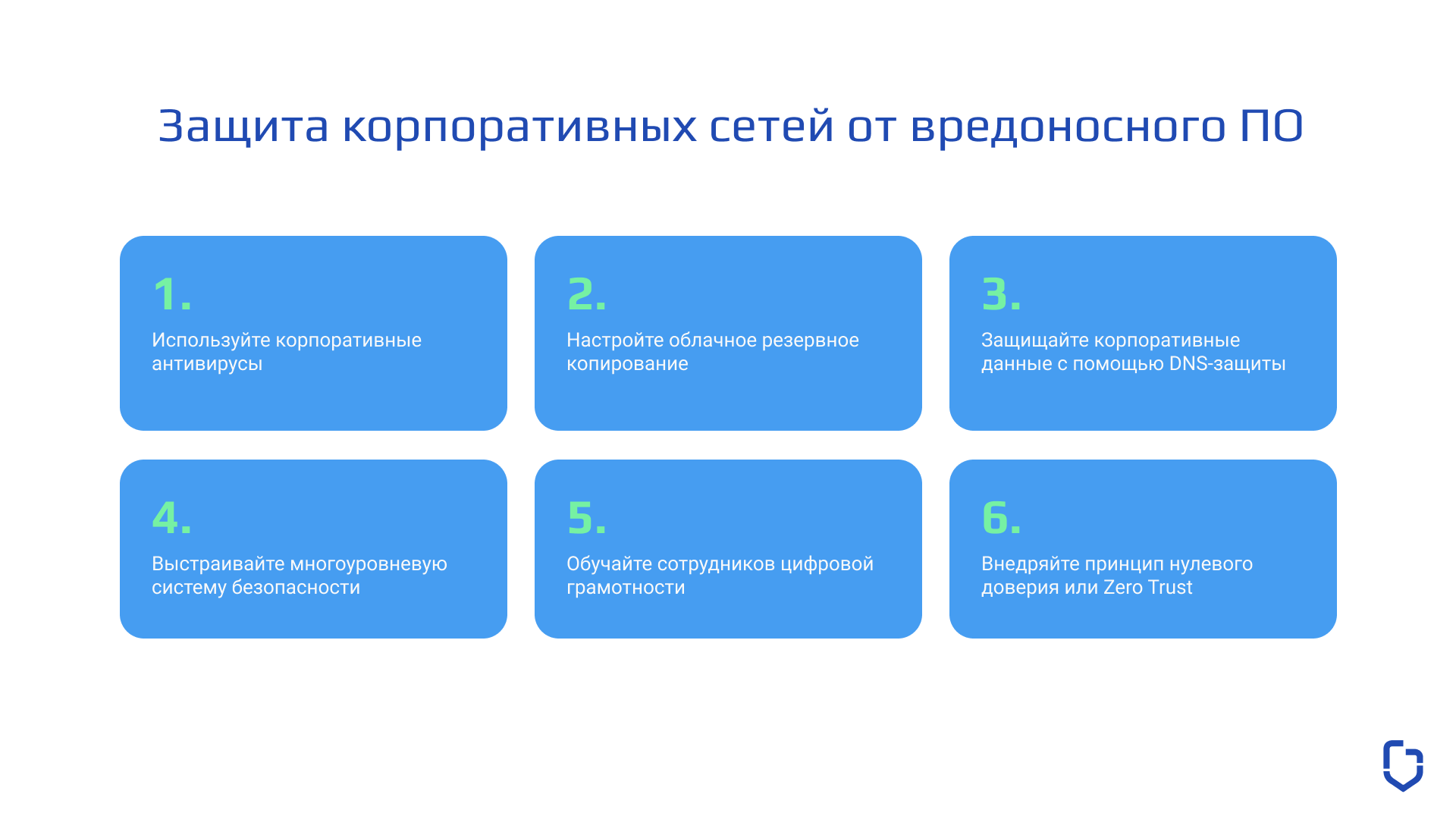 Для сканирования и удаления вирусов компаниям также критически важно обновлять программное обеспечение и антивирусные программы на всех компьютерах компании, но для корпоративной сети обычного антивируса недостаточно. Поэтому администраторам сети, а также руководителям информационной безопасности следует придерживаться следующих советов: