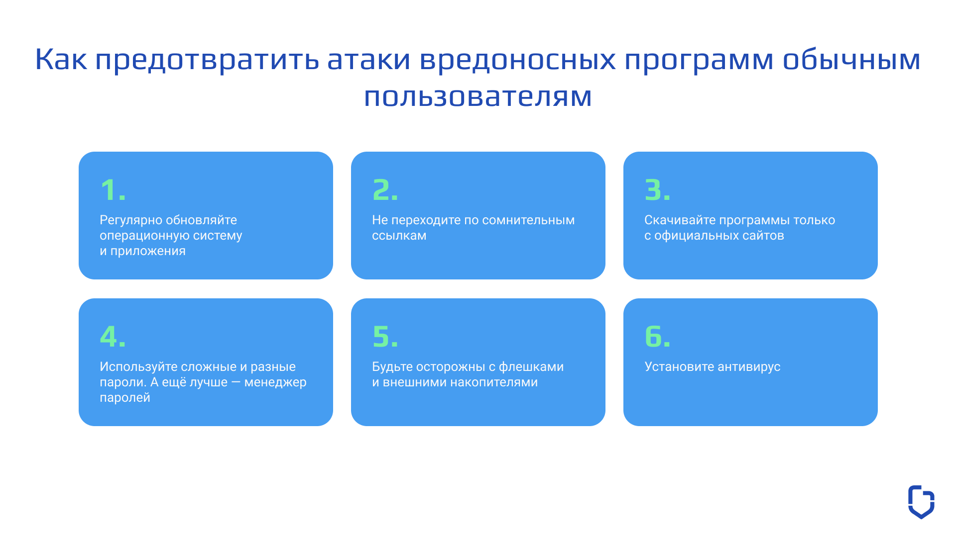 Предотвратить заражение вашего устройства вредоносным ПО проще, чем бороться с их последствиями. Чтобы не стать жертвой атаки, следует придерживаться следующих правил: